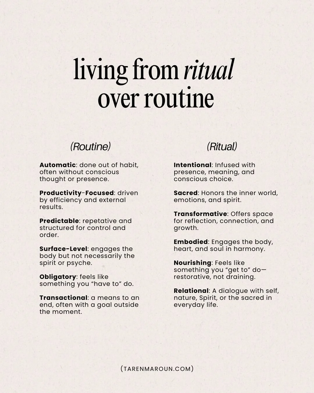 “Living from ritual over routine.”